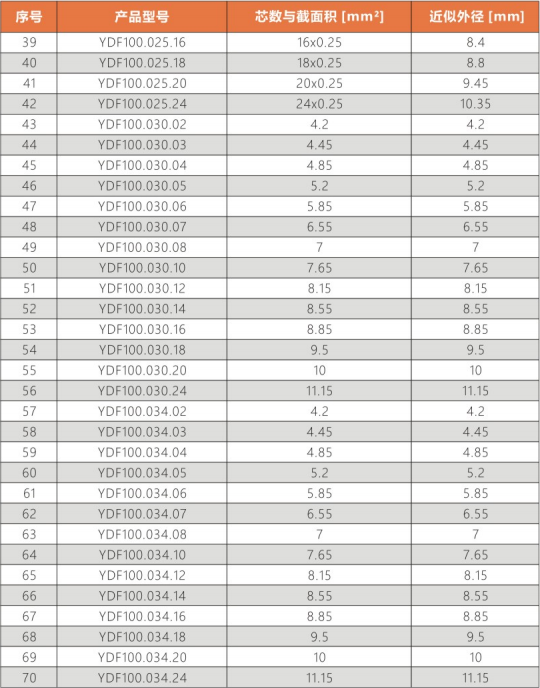 彎曲半徑(jing) : 非拖(tuo)鏈內運動:10.0X電纜外(wai)徑(jing)
