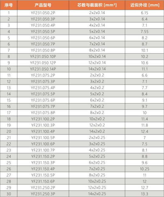 彎(wan)曲半徑(jing) : 非拖鏈(lian)內運動:10.0X電纜外徑(jing)
