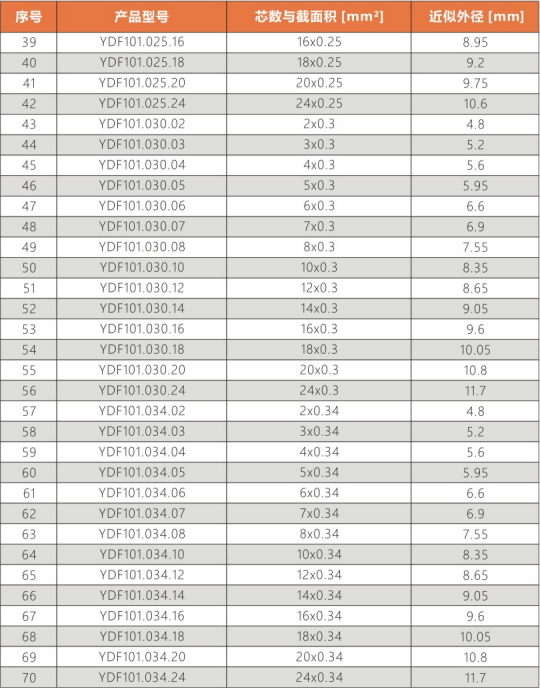 使(shi)用溫度范圍 : 非拖(tuo)鏈(lian)內運動:-5 ℃ 至 105 ℃