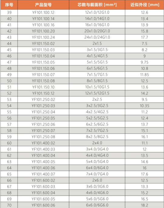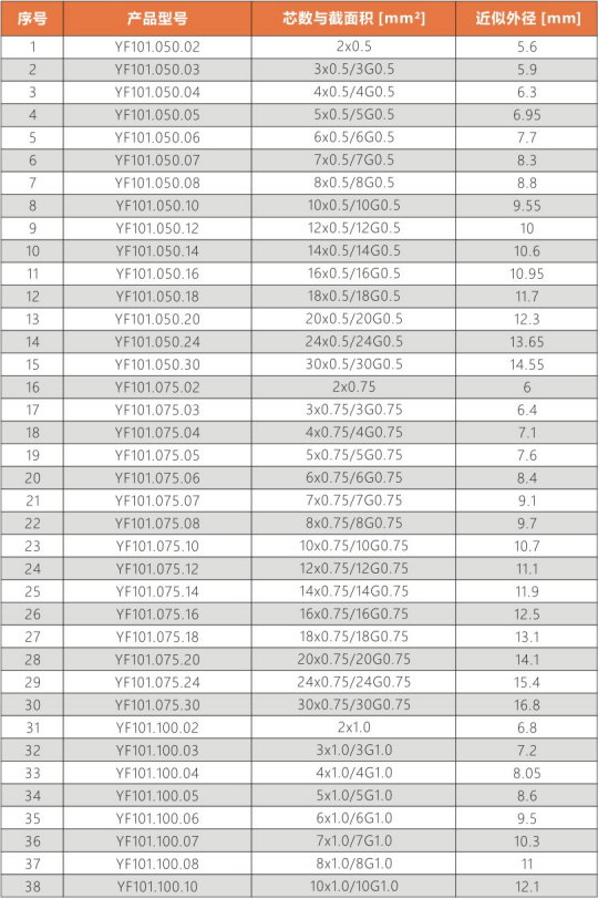 彎曲(qu)半徑 : 非拖(tuo)鏈內運動:10.0X電纜外徑